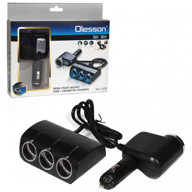 Διακλαδωτής – Πολύμπριζο Αναπτήρα Olessom 1528 12/24V Μονός Και Τριπλός Με 1USB 1Τμχ