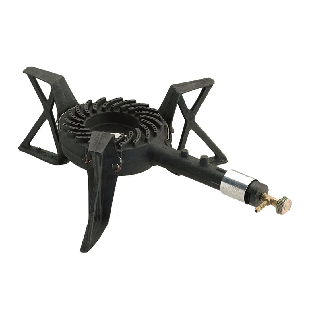 Μαγειρική εστία υγραερίου μονή μαύρου χρώματος της εταιρίας KEMPER, κατασκευασμένη από χυτοσίδηρο. Διαθέτει 3 ποδια που εξυπηρετούν στην καλύτερη σταθεροποίηση της στο έδαφος ή σε σταθερή επιφάνεια (τραπέζι, πάγκο κ.α). Ιδανική εστία για οικιακή χρήση ή σε τροχόσπιτο, αλλά και για εξωτερικό χώρο (βουνό, θάλασσα ή camping κ.α) . Το μικρό της μέγεθος σας επιτρέπει να την μετακινείτε και να την μεταφέρετε με μεγάλη ευκολία όπου εσείς επιθυμείτε. Κατάλληλο για να ζεσταίνει κονσέρβες, εξοπλισμένο με στήριγμα κατσαρόλας.