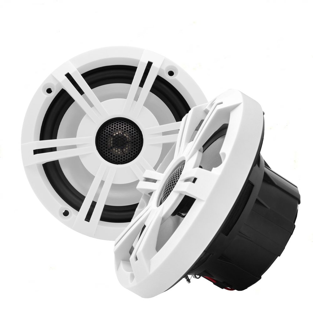 Ηχεία ηχοσυστήματος, πλήρως αδιάβροχα, κατάλληλα για βάρκες, σκάφη, μπάνιο, κουζίνα, σάουνα, κτλ. Διαθέτουν 2 δρόμους (δύο μονοπάτια/μεγάφωνα), woofer για τις χαμηλές συχνότητες και tweeter για τις υψηλές.