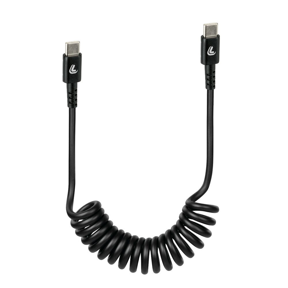 Καλώδιο φόρτισης και μεταφοράς δεδομένων με καλώδιο σπιράλ TYPE-C μαύρο από την εταιρεία LAMPA, ιταλικής προέλευσης.