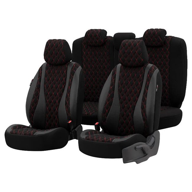 <strong>Καλύμματα Αυτοκινήτου Otom Emperor Design Universal Rachel / Δερματίνη Καπιτονέ Σετ Εμπρός / Πίσω Μαύρο Με Κόκκινο Κέντημα EMP-601</strong>