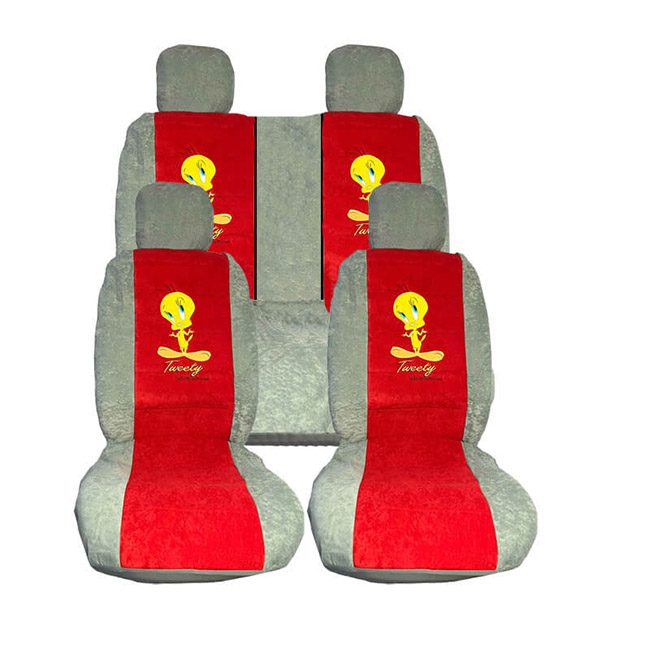 Καλύμματα Αυτοκινήτου Βελούδο Tweety Κόκκινο-Γκρι Με 2 Φερμουάρ Σετ 8 Τεμάχια