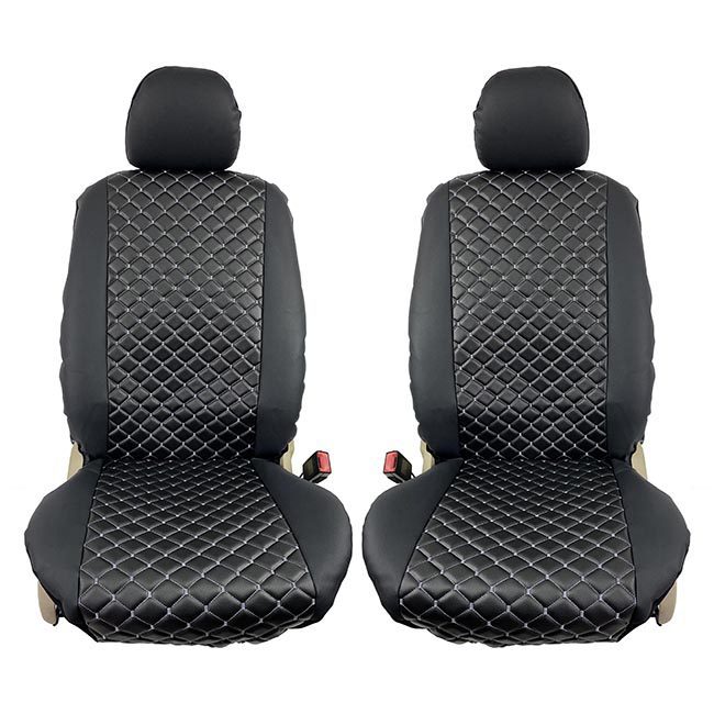 Ημικαλύμματα Καθισμάτων Αυτοκινήτου Δερματίνη Royal Μαύρα Με Γκρι Ραφή Ζευ 2Τμχ