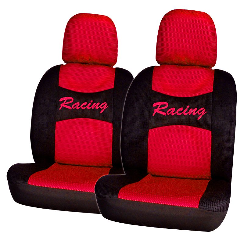 Καλύμματα Racing για τοποθέτηση στα καθίσματα του οδηγού και συνοδηγού του αυτοκινήτου. Προσφέρουν πλήρη κάλυψη στα καθίσματα και τα προστατεύουν από τη βρωμιά και τη φθορά διατηρώντας την αρχική ταπετσαρία. Είναι κατασκευασμένα από πολυεστέρα, υλικό που είναι διαπνέον, δεν απαιτεί τη συνεχή φροντίδα του δέρματος και προσφέρει άνεση στη πολύωρη οδήγηση τόσο για τον οδηγό όσο και για τους επιβάτες. Επιπλέον αναβαθμίζουν τη συνολική αισθητική της καμπίνας του αυτοκινήτου.