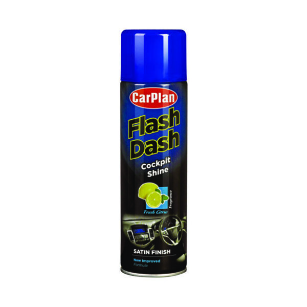 Καθαριστικό και γυαλιστικό υγρό σε σπρέι, χωρίς σιλικόνη με βάση το νερό αγγλικής προέλευσης της εταιρίας Carplan. Η σύνθεση με βάση το νερό προσφέρει ένα σατινέ γυαλιστερό φινίρισμα (διακριτική γυαλάδα), κατάλληλο για μοντέρνα αυτοκίνητα και για εκείνους που δεν θέλουν ιδιαιτέρως γυαλιστερό αποτέλεσμα. Η φόρμουλα του Flash Dash καθαρίζει σε βάθος από την βρωμιά και την σκόνη, ενυδατώνει, ανανεώνει και προστατεύει τα πλαστικά μέρη από ξεθώριασμα και ραγίσματα. Μετά τον καθαρισμο, το υγρό αφήνει ένα ευχάριστο διακριτικό άρωμα στην καμπίνα. Κατάλληλο για ταμπλό οχήματος, για άβαφους προφυλακτήρες αυτοκινήτων, περιβλήματα καθρεπτών κ.α.