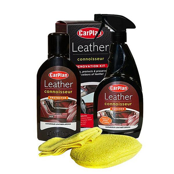 Κιτ περιποίησης δερμάτινων επιφανειών της σειράς Leather valet της εταιρίας Carplan, αγγλικής προέλευσης. Ένα πλήρες σετ καθαρισμού,συντήρησης και προστασίας των δερμάτινων καθισμάτων, πολυθρόνων, επίπλων, ταπετσαριών κ.α. Το επαγγελματικό Leather Connosseur Renovation Kit θα καθαρίσει και θα ενυδατώσει απαλά την ταπετσαρία, αντικαθιστώντας τα φυσικά έλαια που είναι απαραίτητα για τη διατήρηση της ελαστικότητας και της φρέσκιας όψης. Αφήνει επίσης ένα ευχάριστο άρωμα "φρέσκου δέρματος".
