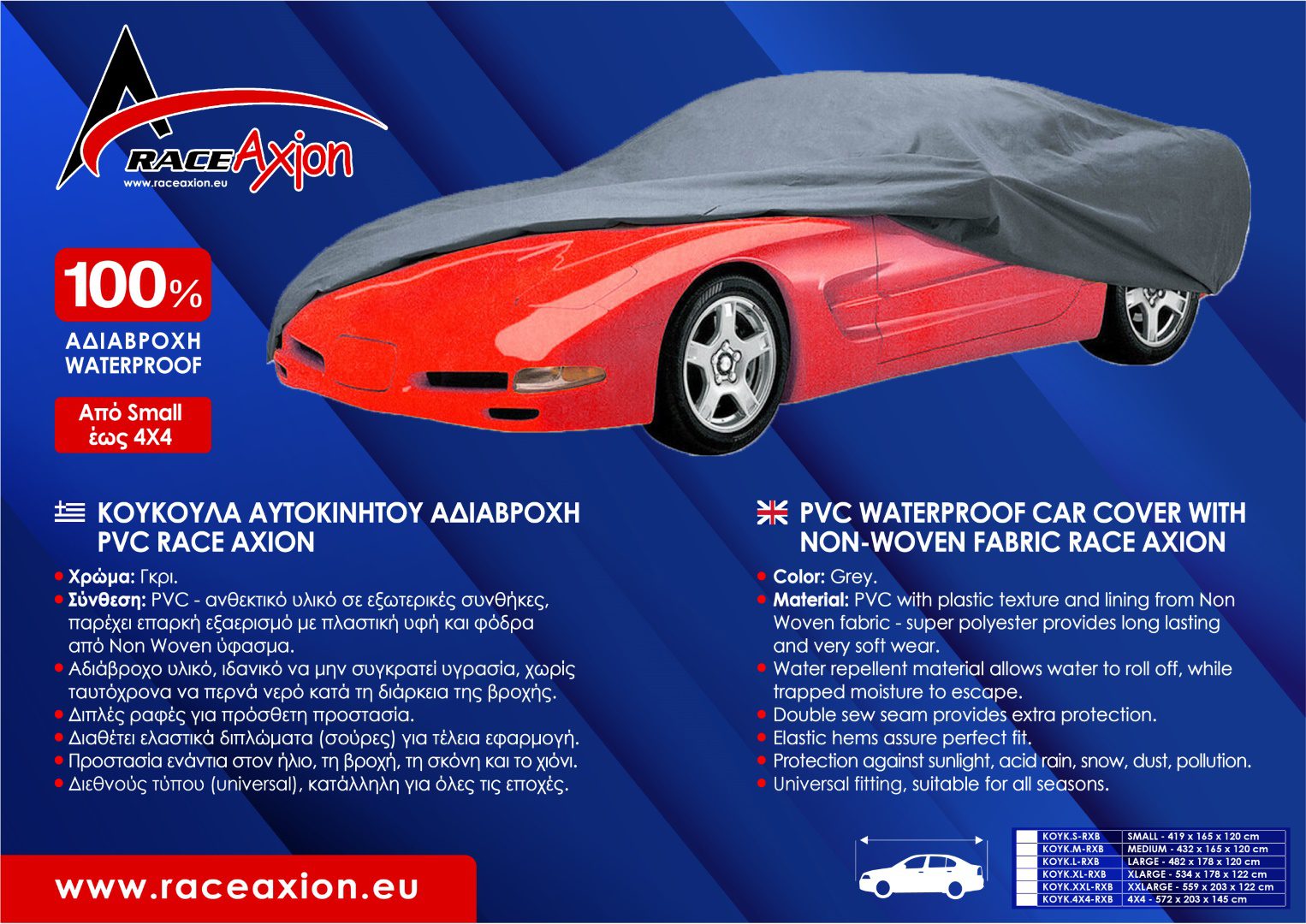 ΚΟΥΚΟΥΛΑ ΑΥΤΟΚΙΝΗΤΟΥ MEDIUM ΑΔΙΑΒΡΟΧΗ PVC 432x165x120cm RACE AXION – 1ΤΕΜ.