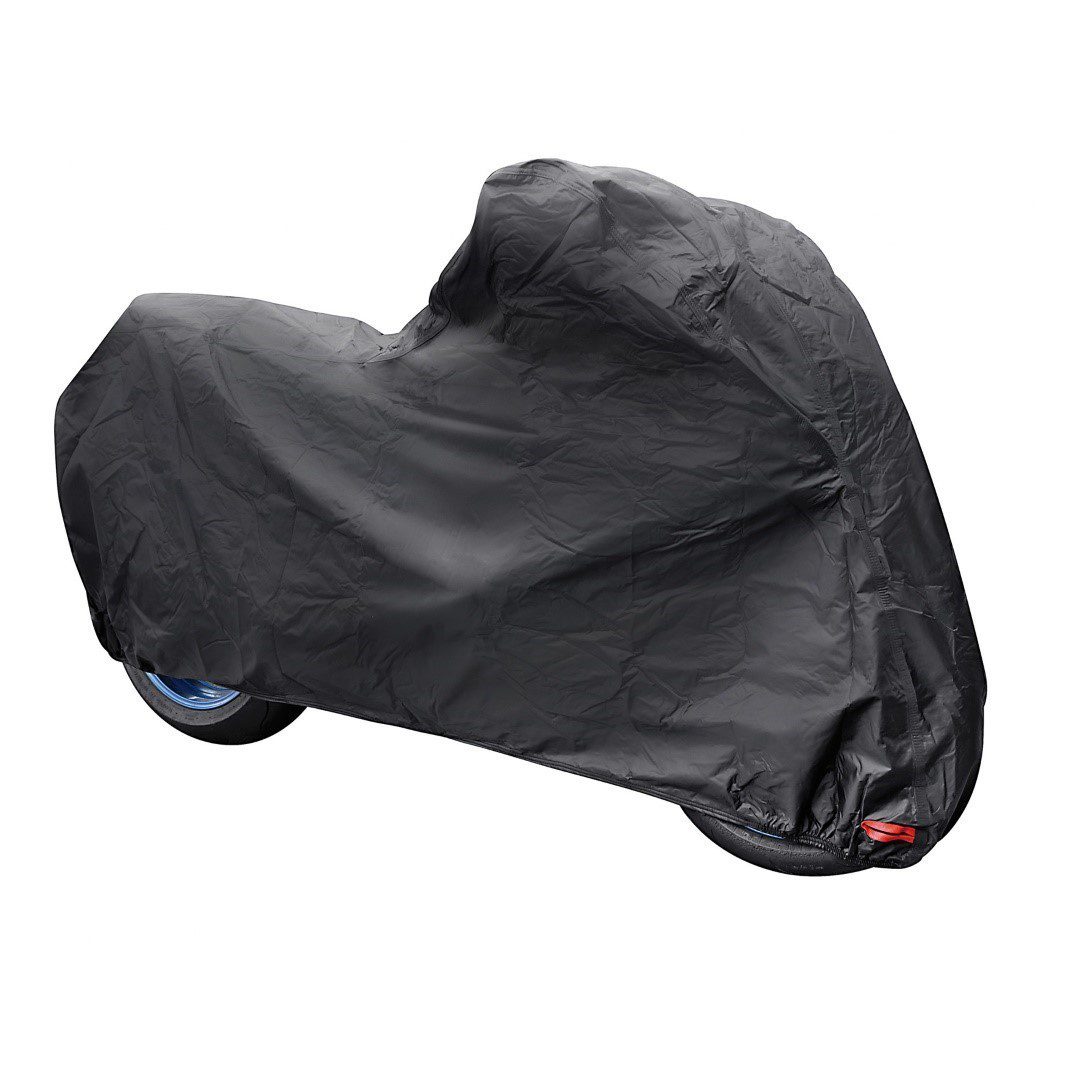 Προστατευτική κουκούλα μηχανής/μοτοσυκλέτας COVERLUX, ιταλικής προέλευσης, κατάλληλη για χρήση σε όλες τις καιρικές συνθήκες, καθώς με τη χρήση της αποτρέπονται οι επιβλαβείς αχτίδες του ηλίου, η βροχή, ο αέρας, το χιόνι, η σκόνη, οι κουτσουλιές από πτηνά, κ.ά. να εισχωρήσουν στα μηχανικά, μεταλλικά και πλαστικά μέρη του οχήματος και να τα φθείρουν. Πρόκειται για μια κουκούλα με εξαιρετικά μαλακή σε υφή εσωτερική επένδυση και εξωτερική πλαστικοποιημένη αδιάβροχη επίστρωση υψηλής ποιότητας και αντοχής. Οι ραφές της καλύπτονται από ειδική αδιάβροχη ταινία για αποφυγή εισχώρησης υγρού στοιχείου στο εσωτερικό μέρος της και διαθέτει λάστιχο στο μπροστινό και στον πίσω τροχό μαζί με ιμάντες συγκράτησης για να μπορεί να συγκρατείται ικανοποιητικά επάνω στο όχημα ακόμη και σε περίπτωση ισχυρών ανέμων. Επίσης, επάνω στη κουκούλα υπάρχει ειδική οπή για να μπορείτε να τοποθετήσετε αντικλεπτική κουλούρα ασφαλείας (δεν περιλαμβάνεται). Είναι ιδιαιτέρως ελαφριά σε βάρος για να μπορείτε να την τοποθετείτε/αφαιρείτε με ευκολία καθημερινά και στη συσκευασία περιλαμβάνεται ειδικό σακίδιο αποθήκευσης και μεταφοράς. Εύκολη και γρήγορη χρήση.