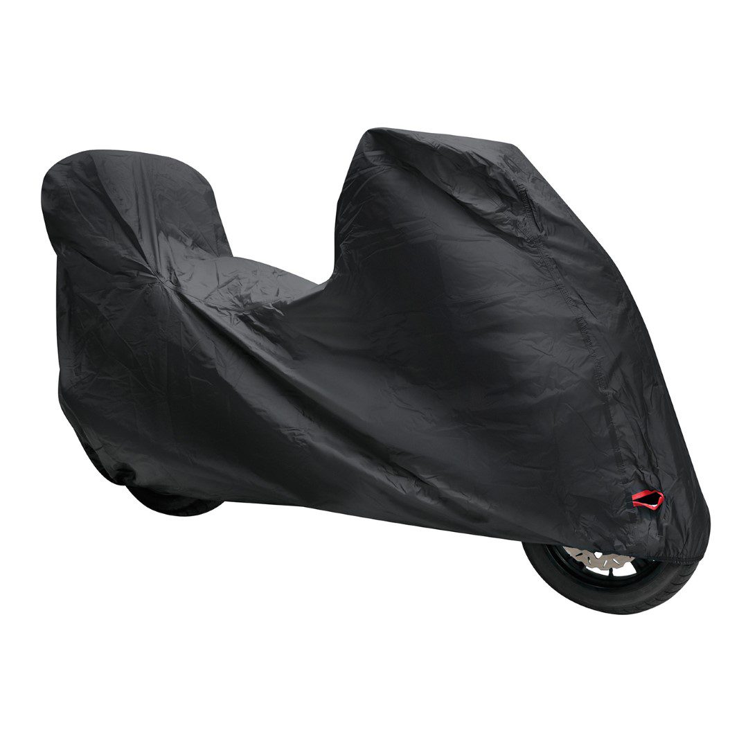 Προστατευτική κουκούλα μηχανής/μοτοσυκλέτας COVERLUX PLUS, ιταλικής προέλευσης, κατάλληλη για χρήση σε όλες τις καιρικές συνθήκες, καθώς με τη χρήση της αποτρέπονται οι επιβλαβείς αχτίδες του ηλίου, η βροχή, ο αέρας, το χιόνι, η σκόνη, οι κουτσουλιές από πτηνά, κ.ά. από το να εισχωρήσουν στα μηχανικά, μεταλλικά και πλαστικά μέρη του οχήματος και να τα φθείρουν. Πρόκειται για μια κουκούλα με εξαιρετικά μαλακή σε υφή εσωτερική επένδυση και εξωτερική πλαστικοποιημένη αδιάβροχη επίστρωση υψηλής ποιότητας και αντοχής, ιδανική για μηχανές, οι οποίες είναι εξοπλισμένες με ζελατίνη (ανεμοθραύστη) μπροστά και μπαγκαζιέρα αποθήκευσης στο πίσω μέρος τους. Οι ραφές της καλύπτονται από ειδική αδιάβροχη ταινία για αποφυγή εισχώρησης υγρού στοιχείου στο εσωτερικό μέρος της και διαθέτει λάστιχο στο μπροστινό και στον πίσω τροχό μαζί με ιμάντες συγκράτησης για να μπορεί να συγκρατείται ικανοποιητικά επάνω στο όχημα ακόμη και σε περίπτωση ισχυρών ανέμων. Επίσης, επάνω στη κουκούλα υπάρχει ειδική οπή για να μπορείτε να τοποθετήσετε αντικλεπτική κουλούρα ασφαλείας (δεν περιλαμβάνεται). Είναι ιδιαιτέρως ελαφριά σε βάρος για να μπορείτε να την τοποθετείτε/αφαιρείτε με ευκολία καθημερινά και στη συσκευασία περιλαμβάνεται ειδικό σακίδιο αποθήκευσης και μεταφοράς. Εύκολη και γρήγορη χρήση.