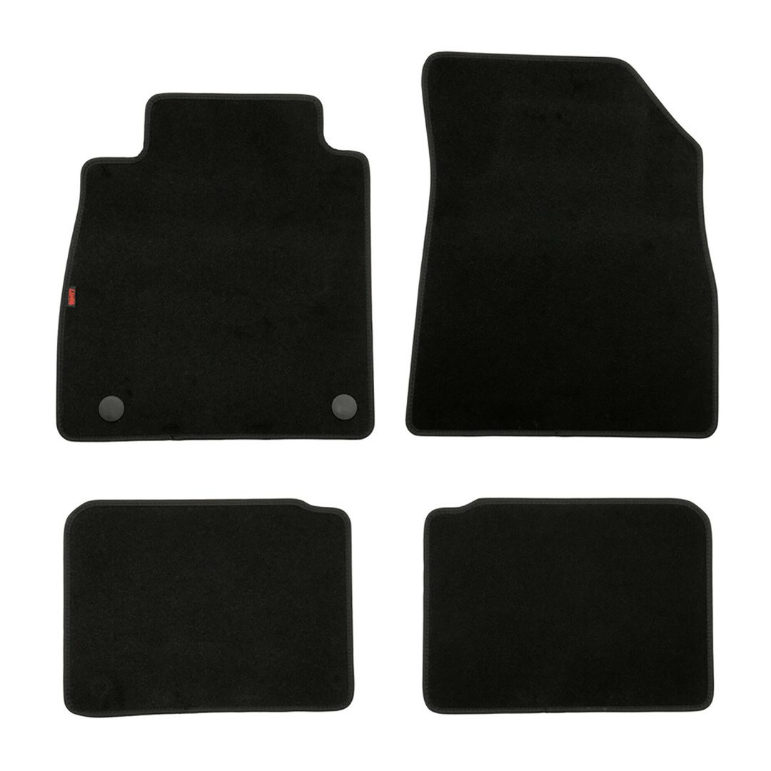 Πατάκια αυτοκινήτου από την εταιρία LAMPA, ιταλικής προέλευσης, κατασκευασμένα από υψηλής ποιότητας μοκέτα – 100% πολυπροπυλένιο – σε μαύρο χρώμα με περιμετρικό φινίρισμα από βελούρ ρέλι (απομίμηση βελούδου), σχεδιασμένα για να ταιριάζουν ακριβώς στις διαστάσεις του δαπέδου του εκάστοτε οχήματος – μαρκέ προϊόν. Είναι αδιάβροχα και διαθέτουν αντιολισθητικό πάτο ενισχυμένο με gel στο πίσω μέρος τους για καλύτερη πρόσφυση στο δάπεδο, καθώς και κουμπιά στερέωσης fix-points για όσα οχήματα είναι εξοπλισμένα με αντίστοιχες εργοστασιακές υποδοχές για να παραμένουν σταθερά στο πάτωμα της καμπίνας κατά την είσοδο/έξοδο των επιβατών.