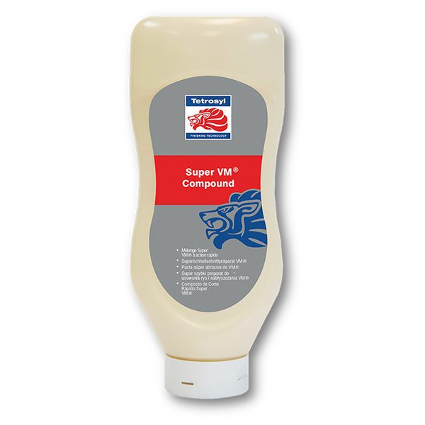 Συμπυκνωμένη αλοιφή γυαλίσματος, της σειράς Super Vm Compound της εταιρίας Tetrosyl. Μια ενισχυμένη πάστα γυαλίσματος γρήγορης δράσης που επιτρέπει την αποτελεσματική λείανση μικρογρατζουνιών σε βαφές οχημάτων που έχουν κερωθεί ή που έχουν το αρχικό χρώμα χωρίς επεξεργασία. Ιδανική πάστα γυαλίσματος για εφαρμογή με σφουγγάρι γυαλίσματος ή με τριβείο. Δεν εμπεριέχει σιλικόνη στην σύνθεσή της και διαθέτει μια νέα τεχνολογία thermos-suspension που χωρίς νερό διατηρεί αποτελεσματικά τη θερμοκρασία της επιφάνειας αποφεύγοντας εγκαύματα ή σημάδια στο χρώμα.