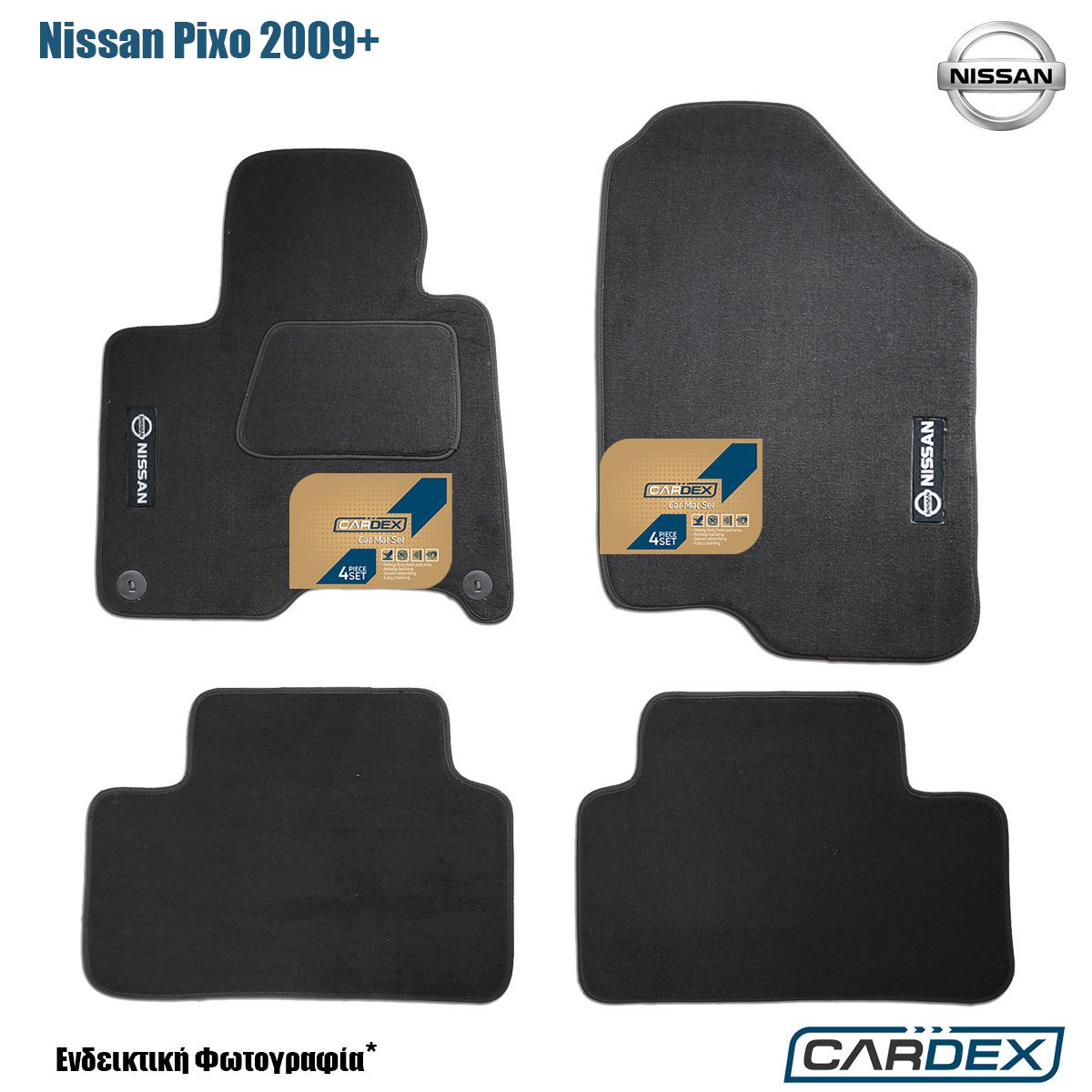 Πατάκια Αυτοκινήτου Nissan Pixo 2009+ μαρκέ μοκέτα μαύρη με λογότυπο, ποιότητας Velourtec™ από την εταιρία Cardex®