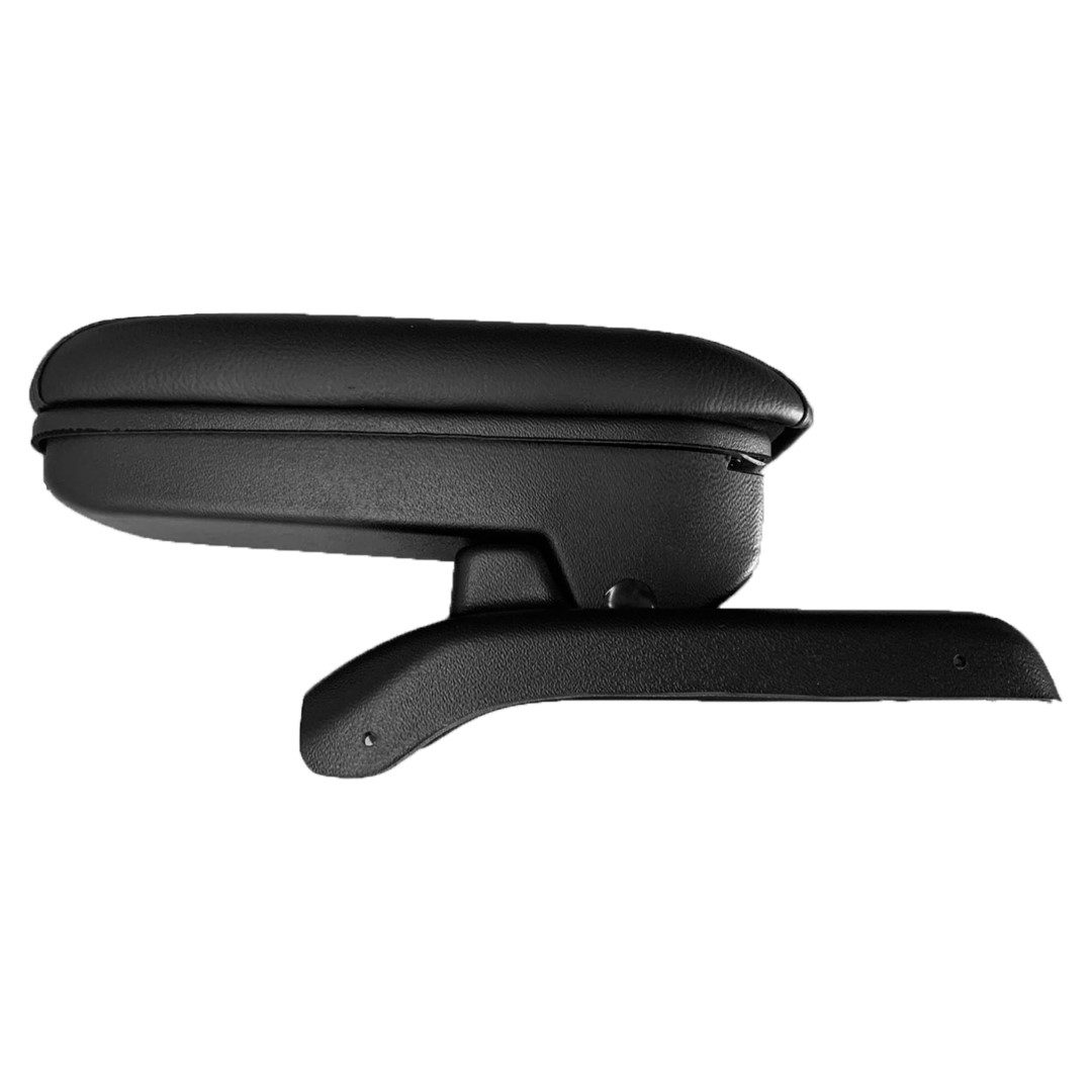 Είναι κατασκευασμένος από ποιοτικό πλαστικό σε συνδυασμό με οικολογικό τεχνόδερμα (συνθετική δερματίνη) σε μαύρο χρώμα με μαύρες ραφές και ειδικά σχεδιασμένος για να ταιριάζει τέλεια στο εκάστοτε όχημα. Διαθέτει πολύ μαλακό καπάκι, το οποίο προεκτείνεται συρταρωτά μπροστά έως και 4 cm, δημιουργώντας μεγαλύτερη επιφάνεια στήριξης, δυνατότητα ανοίγματος έως και 90 μοίρες, εσωτερικό αποθηκευτικό χώρο, σύστημα ανάκλισης για δυνατότητα ανασήκωσης κάθετα ανάμεσα από τα καθίσματα και η βάση τοποθετείται με 4 βίδες εξωτερικά από τη πίσω ποτηροθήκη/σταχτοδοχείο, κτλ. (ανάμεσα από τα μπροστινά καθίσματα).