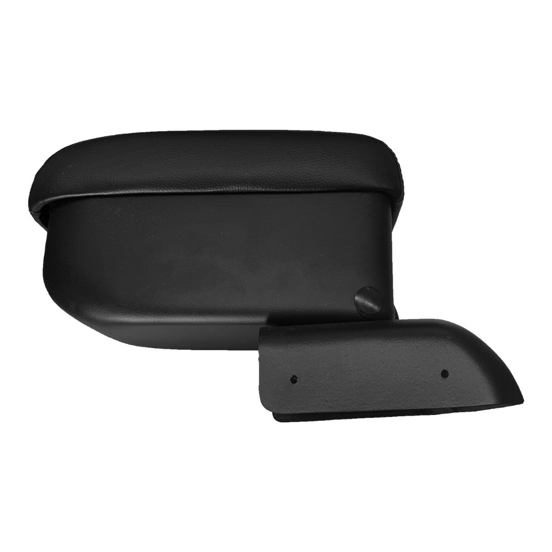 Είναι κατασκευασμένος από ποιοτικό πλαστικό σε συνδυασμό με οικολογικό τεχνόδερμα (συνθετική δερματίνη) σε μαύρο χρώμα με μαύρες ραφές και ειδικά σχεδιασμένος για να ταιριάζει τέλεια στο εκάστοτε όχημα. Διαθέτει πολύ μαλακό καπάκι με δυνατότητα ανοίγματος έως 90 μοίρες, εσωτερικό αποθηκευτικό χώρο, σύστημα ανάκλισης για δυνατότητα ανασήκωσης κάθετα ανάμεσα από τα καθίσματα (90 μοίρες) και η βάση τοποθετείται με 4 βίδες εξωτερικά από τη πίσω ποτηροθήκη (τη καλύπτει πλήρως).