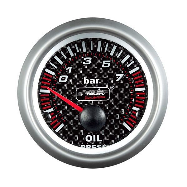 Πίεση λαδιού carbon look με λευκό φως Simoni Racing.Περιλαμβάνεται ο αισθητήρας. Ασημί πλαίσιο. Για τοποθέτηση εσωτερικά στο ταμπλό ή σε ειδική βάση οργάνων. Διάμετρος οργάνου: 52mm (2″).