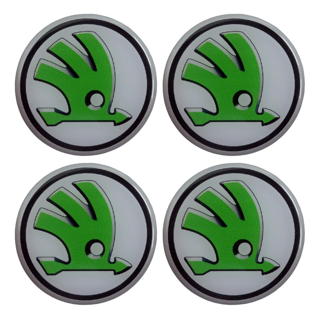 Αυτοκόλλητα σήματα ζαντών SKODA με επικάλυψη σμάλτου για πρόσθετη σκληρότητα υλικού, κατάλληλα για τοποθέτηση στο κέντρο των ζαντών ή στα τάσια των τροχών του αυτοκινήτου για την αντικατάσταση των ήδη υπαρχόντων σημάτων σε περίπτωση φθοράς από τον ήλιο, κλοπής, κτλ., καθώς και για την διακόσμηση του εξωτερικού του οχήματος με το έμβλημα (logo) της μάρκας του. Εύκολη και γρήγορη χρήση/τοποθέτηση.