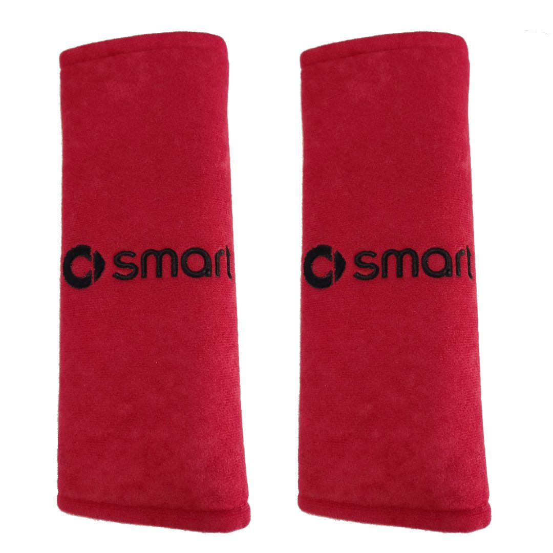 Προστατευτικά μαξιλαράκια για ζώνη ασφαλείας με το έμβλημα της SMART , κατασκευασμένα εσωτερικά από μαλακό, αφρώδες υλικό (αφρολέξ) και εξωτερική επένδυση από βελούρ, μαλακό ύφασμα με βελουτέ υφή χωρίς να "τσιμπάει", ιδανικά να προσφέρουν άνεση κατά το ταξίδι. Διαθέτουν αυτοκόλλητες velcro ταινίες (σκρατς) στο πίσω μέρος τους για να τοποθετούνται επάνω στις ζώνες, αγκαλιάζοντάς τες, έτσι ώστε κατά την χρήση τους να μην πιέζουν στον ώμο τους επιβάτες. Κατάλληλο αξεσουάρ αυτοκινήτου και για την διακόσμηση του εσωτερικού με το σήμα (logo) της μάρκας του οχήματος. Εύκολη και γρήγορη τοποθέτηση.