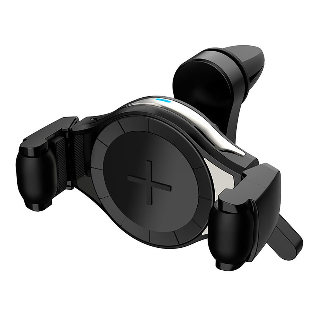 Βάση κινητού αεραγωγού της εταιρίας AMIO, πολωνικής προέλευσης,με ασύρματο φορτιστή. Ταιριάζει σε smartphone 4,5-6,5". Συμβατό με όλες τις συσκευές με δυνατότητα QI. Οι ρυθμιζόμενες σιαγόνες συγκράτησης κρατούν τα τηλέφωνα με ασφάλεια.